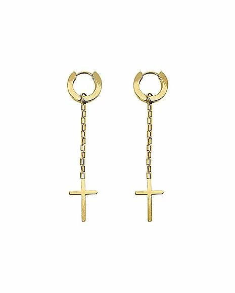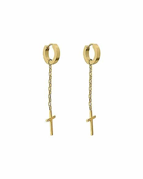 Top 10 π Goldtone Inverted Cross Huggie Dangle Earrings – 18 Gauge β¨