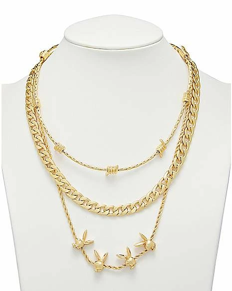 Top 10 π Goldtone Three Row Playboy Bunny Necklace π