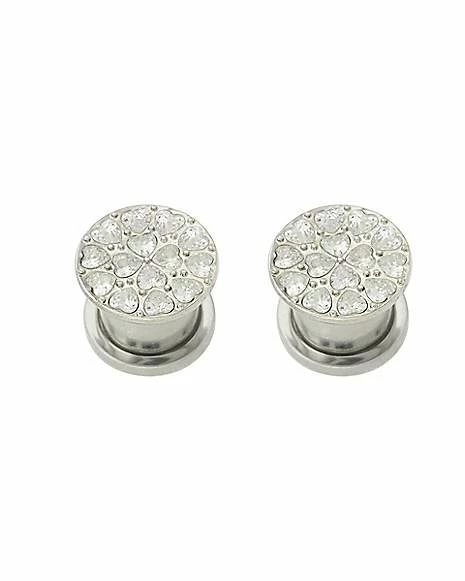 Best Pirce π Heart CZ Silvertone Plugs β€οΈ