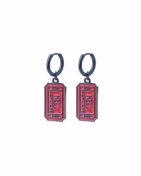 Cheapest π Hell Admit One Huggie Hoop Dangle Earrings – 20 Gauge π
