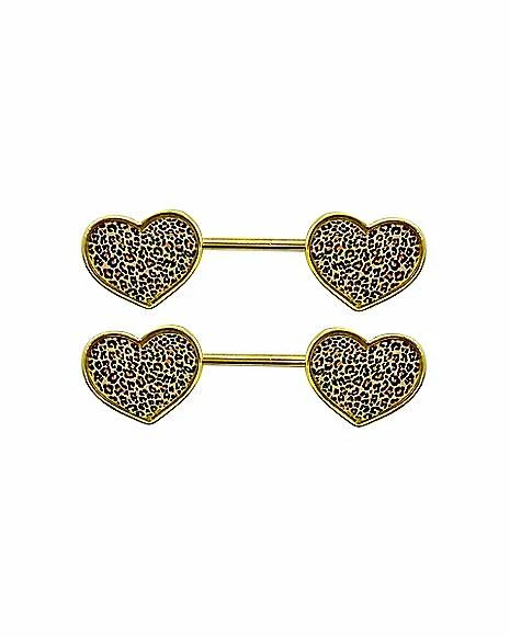 Buy π― Leopard Heart Nipple Barbells – 14 Gauge π