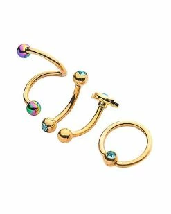 Budget 🧨 CZ Multi-Pack Goldtone Eye Labret Lip Rings 4 Pack – 16 Gauge 👏