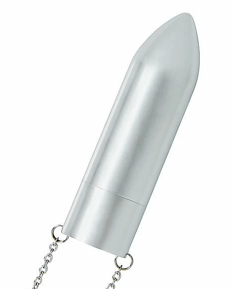 This Mini Love 10-Function Bullet Necklace Vibrator is perfect for those who love a little action on the go. This bullet vibrator necklace features up to ten different speeds to choose from, cyclic vibrations, and is very easy to carry. This unique waterproof bullet vibe comes with a necklace chain for wearing and is the perfect way to show how much you love getting your rocks off.Β