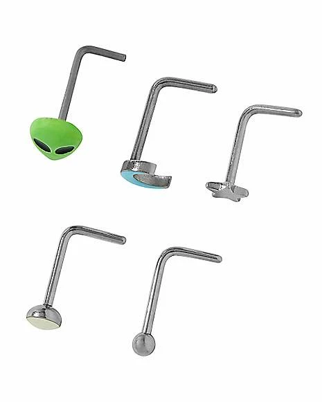 Coupon π Multi-Pack Alien L-Bend Nose Rings 5 Pack β 20 Gauge π