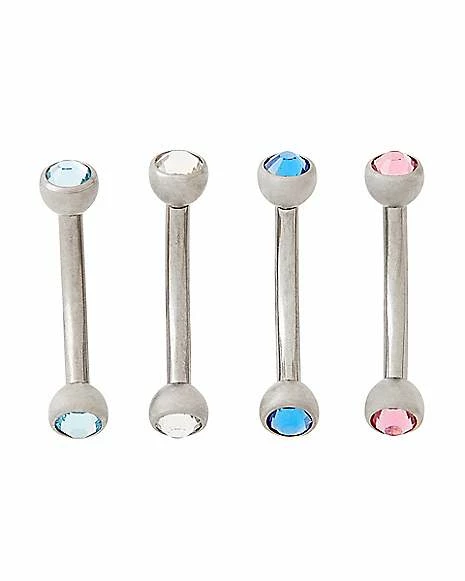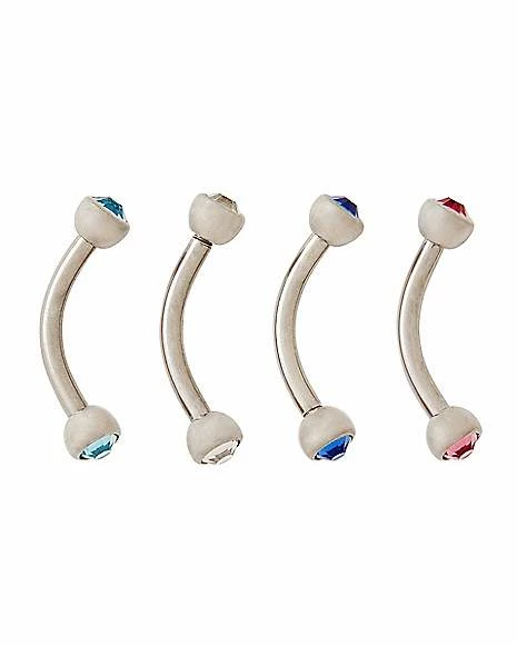 Wholesale 🤩 Multi-Pack Assorted CZ Titanium Curved Barbells 4 Pack – 16 Gauge 🎁