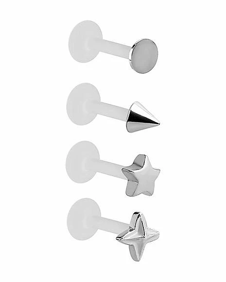 Outlet π Multi-Pack Assorted Shapes Bioflex Labret Lip Rings 4 Pack – 16 Gauge π
