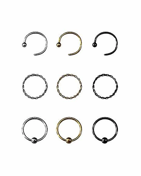 Flash Sale β Multi-Pack Assorted Style Nose Rings 9 Pack – 20 Gauge π₯