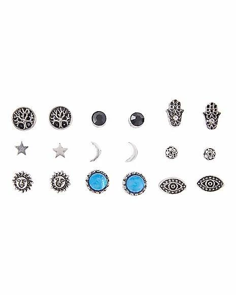 Promo ❤️ Multi-Pack Assorted Tree Sun Eye Moon Stud Earrings – 9 Pair 🧨