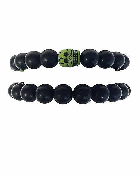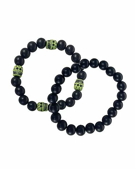 Buy π Multi-Pack Black and Green Skull Beaded Bracelets – 2 Pack π