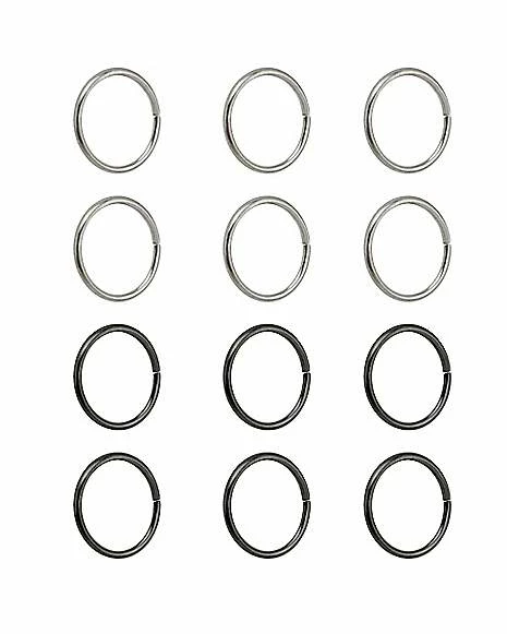Best deal ✨ Multi-Pack Black and Silvertone Seamless Hoop Nose Rings 12 Pack – 20 Gauge ⭐