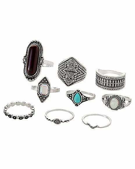 Budget π Multi-Pack Black and Turquoise Gem Rings – 9 Pack β