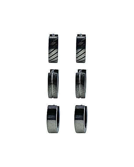 Deals π Multi-Pack Black and White Ombre Huggie Hoop Earrings 3 Pair – 18 Gauge π