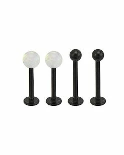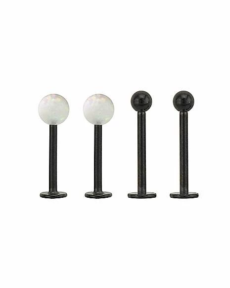 Flash Sale π Multi-Pack Black and White Opal-Effect Labret Lip Rings 4 Pair – 16 Gauge π