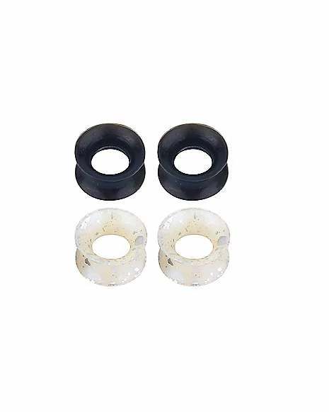 Budget ✔️ Multi-Pack Black and White Splatter Silicone Tunnels – 4 Pack ⌛