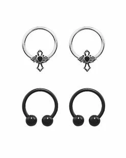 Outlet π Multi-Pack Black Cross Captive Rings and Horseshoes 4 Pack – 16 Gauge π€©