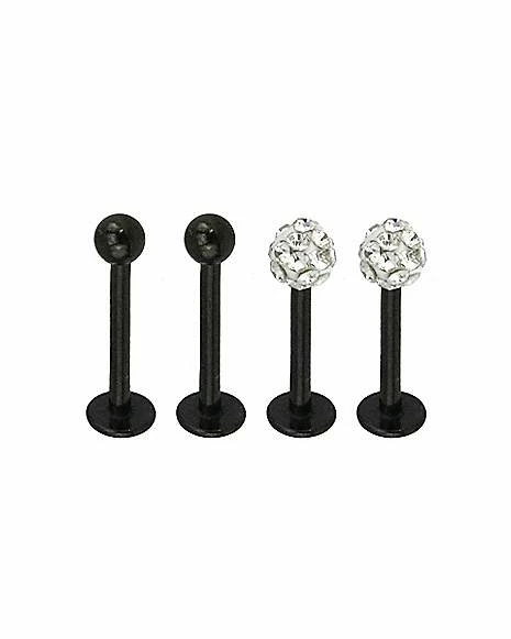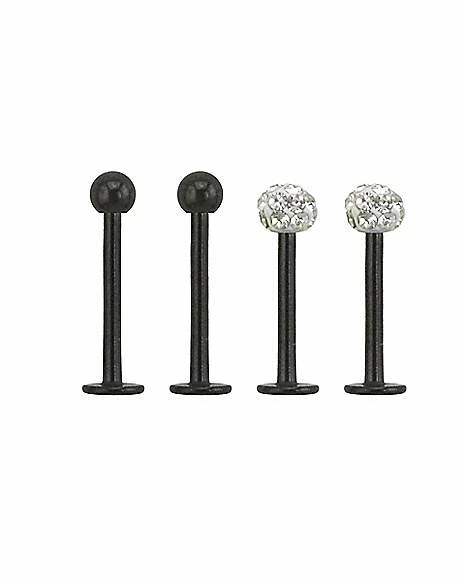 New βοΈ Multi-Pack Black CZ Labret Lip Rings 4 Pack – 16 Gauge π§¨