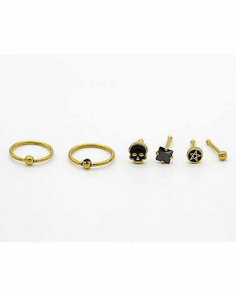 Top 10 π Multi-Pack Black CZ Skull and Pentagram Hoop Nose Rings and Bone Nose Rings 6 Pack – 20 Gauge β¨