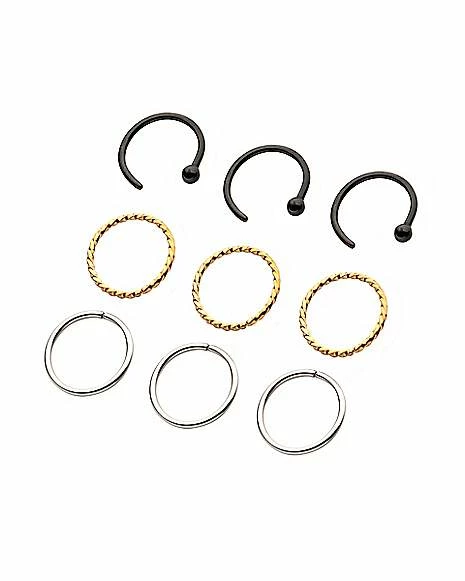 Discount ❤️ Multi-Pack Black Goldtone and Silvertone Nose Rings 9 Pack – 20 Gauge ⌛