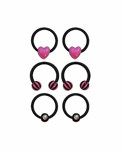 Promo π Multi-Pack Black Hearts Horseshoe Rings 6 Pack – 16 Gauge π
