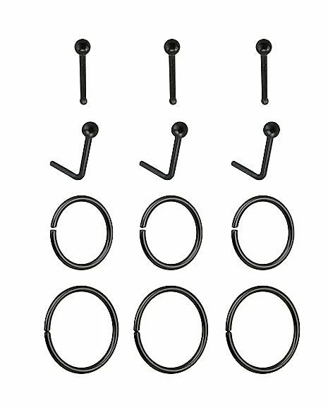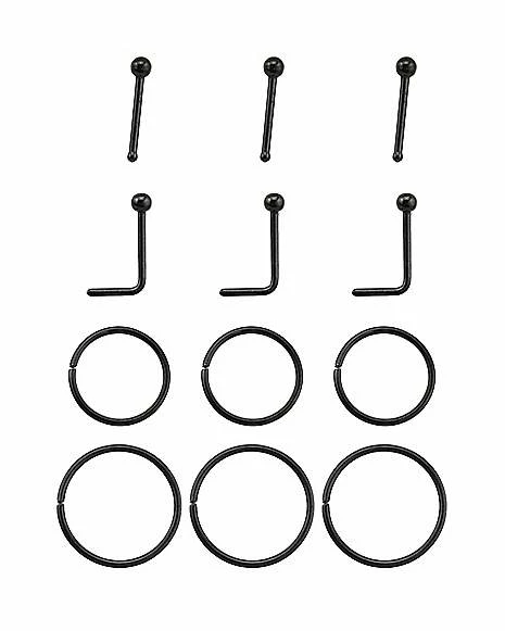 Best Sale π Multi-Pack Black Nose Pins and L-Bend Nose Rings and Hoop Nose Rings 12 Pack – 20 Gauge π€©