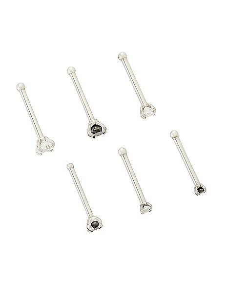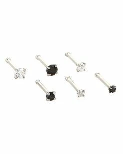 Outlet π Multi-Pack Black Prong CZ Bone Nose Rings 6 Pack – 20 Gauge π₯