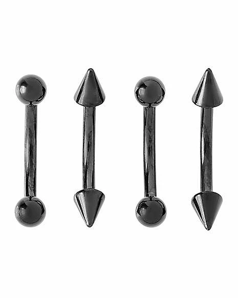 Hot Sale ✔️ Multi-Pack Black Spike and Round Titanium Curved Barbells 4 Pack – 16 Gauge ✨