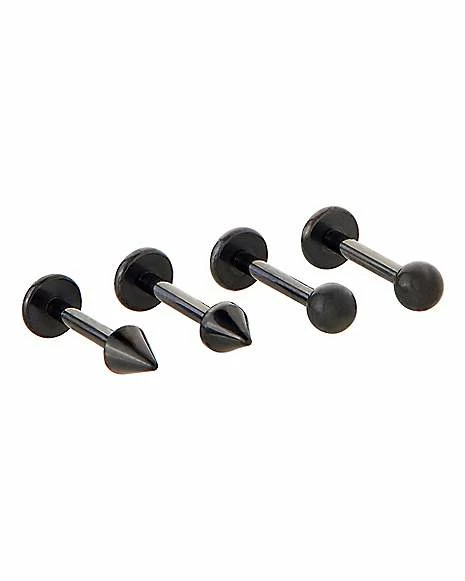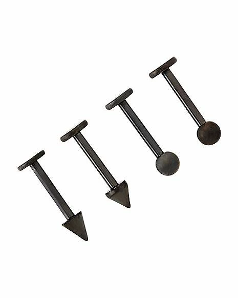 Budget π Multi-Pack Black Spike Titanium Labret Lip Rings 4 Pack – 16 Gauge π