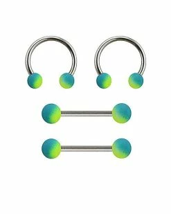 Deals βοΈ Multi-Pack Blue and Green Horseshoe Rings and Nipple Barbells 2 Pair – 14 Gauge π