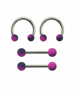 Top 10 ✨ Multi-Pack Blue and Purple Ombre Horseshoe Rings and Nipple Barbells 2 Pair – 14 Gauge ✨