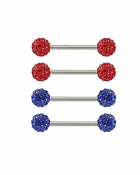 Buy π Multi-Pack Blue and Red CZ Nipple Barbells 2 Pair – 14 Gauge β