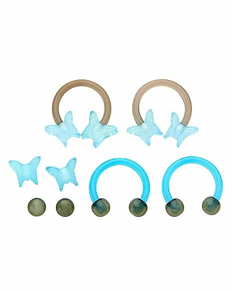 Brand new π Multi-Pack Blue Butterfly Horseshoe Rings and Extra Balls 4 Pack – 14 Gauge π€©