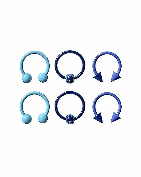 New 🔥 Multi-Pack Blue Horseshoe and Captive Rings 3 Pair – 16 Gauge 🔔