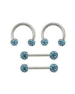 Promo π Multi-Pack Blue Paved CZ Horseshoe Rings and Nipple Barbells 2 Pair – 14 Gauge π