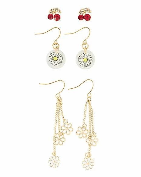 Cheapest π Multi-Pack Cherry and Daisy Earrings – 3 Pair β