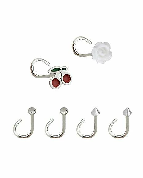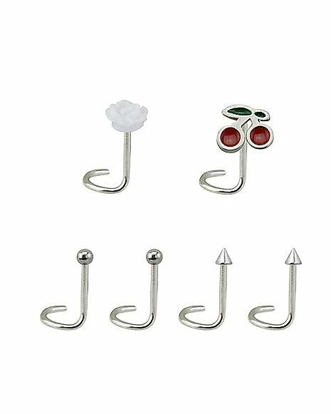 Best Sale π Multi-Pack Cherry and Flower Screw Nose Rings 6 Pack – 20 Gauge π