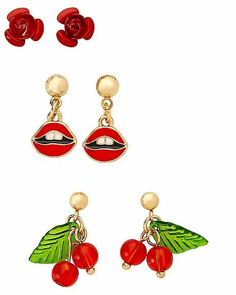 Top 10 π Multi-Pack Cherry Lips and Rose Earrings – 3 Pack π