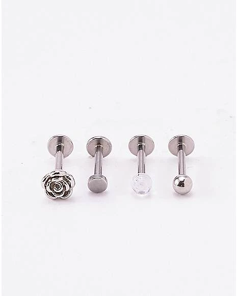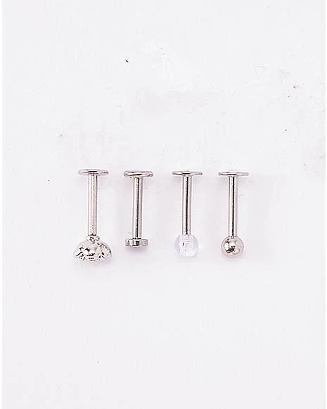 Be the first to review “Promo π Multi-Pack Clear CZ and Flower Labret Lip Rings 4 Pack – 16 Gauge π” Cancel reply