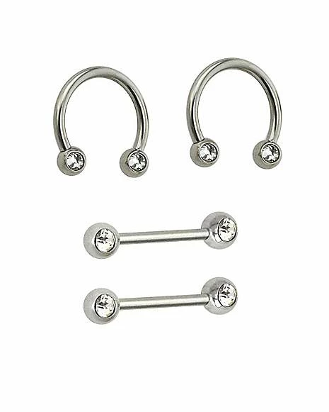Top 10 π Multi-Pack Clear CZ Titanium Horseshoe Rings and Barbells 2 Pair – 14 Gauge β