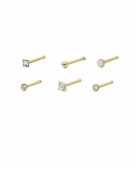 Wholesale β€οΈ Multi-Pack Clear Stone and Goldtone Nose Pins 6 Pack – 20 Gauge π