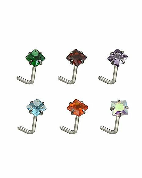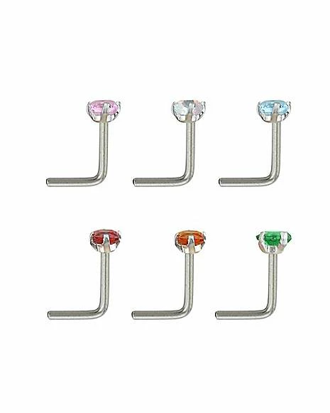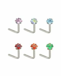 Brand new π Multi-Pack Colored CZ L-Bend Nose Rings 6 Pack – 20 Gauge π