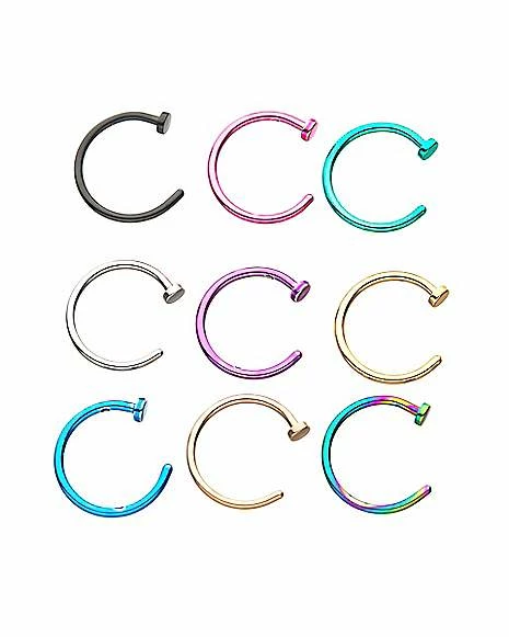 Budget 🥰 Multi-Pack Colored Half Hoop Nose Rings 9 Pack – 20 Gauge ✔️
