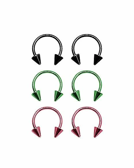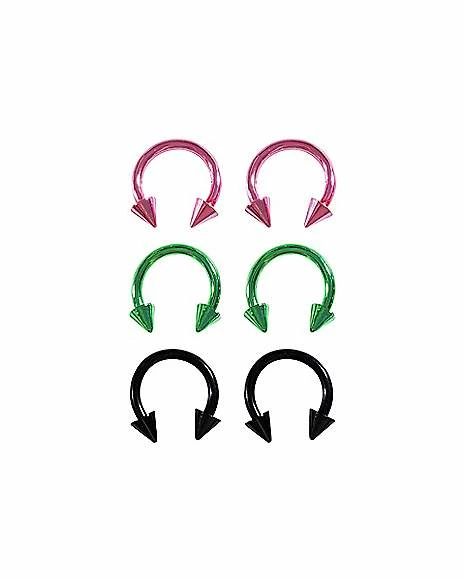 Hot Sale π₯ Multi-Pack Colored Spiked Horseshoe Rings 3 Pair – 16 Gauge π