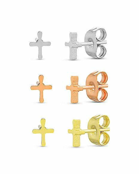 Deals β Multi-Pack Cross Goldtone and Rose Goldtone Stud Earrings 3 Pair – 20 Gauge π