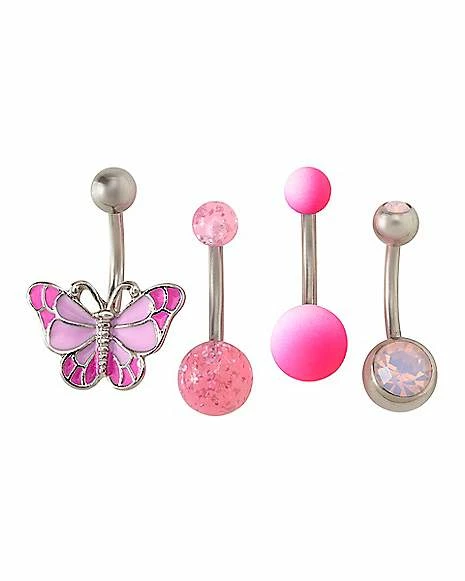 Best Pirce β Multi-Pack CZ and Opal-Effect Butterfly Belly Rings 4 Pack – 14 Gauge π