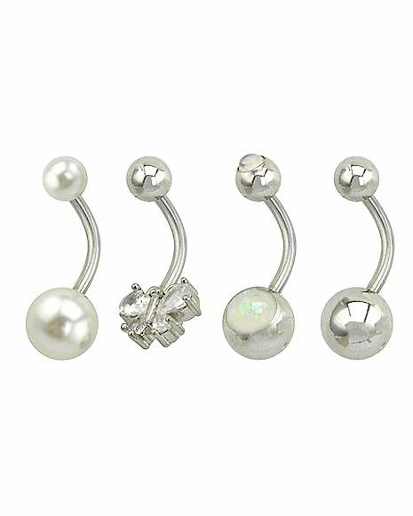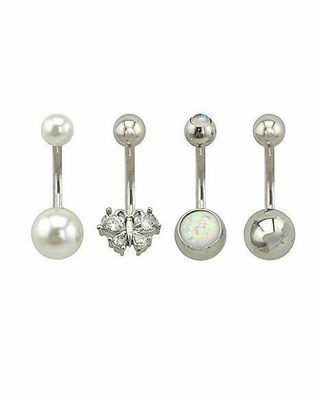 Best deal π Multi-Pack CZ and Pearl-Effect Butterfly Belly Rings 4 Pack – 14 Gauge π―