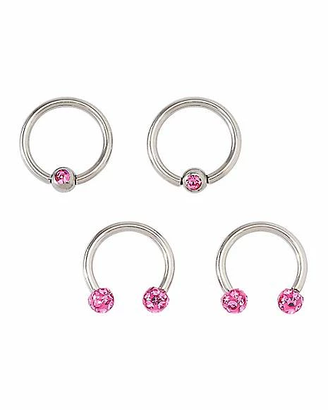 Top 10 π Multi-Pack CZ and Silverplated Pink Pave Titanium Cartilage Captive Rings and Horseshoes 4 Pack – 16 Gauge β€οΈ