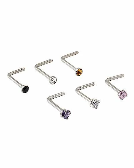 Flash Sale βοΈ Multi-Pack Silvertone CZ L-Bend Stud Nose Rings 6 Pack – 20 Gauge π
