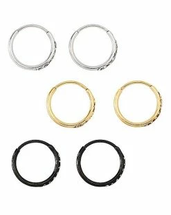 Best Pirce ⭐ Multi-Pack CZ Black Silver Goldtone Hoop Earrings 6 Pack – 20 Gauge ✨