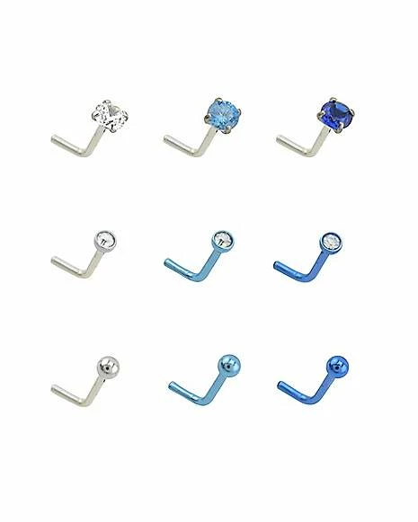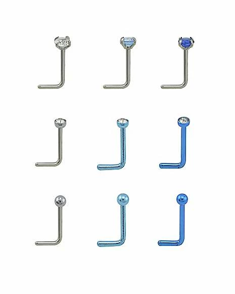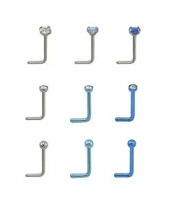 Flash Sale π Multi-Pack CZ Blue and Teal L-Bend Nose Rings 9 Pack – 20 Gauge π§¨