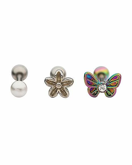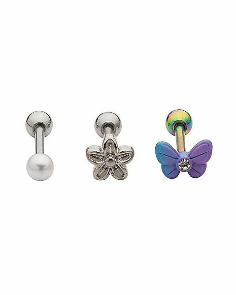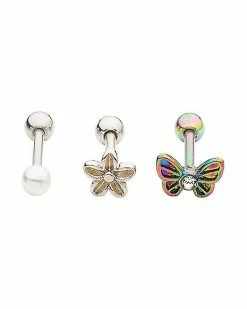 Brand new π Multi-Pack CZ Butterfly and Flower Cartilage Barbells 3 Pack – 18 Gauge β